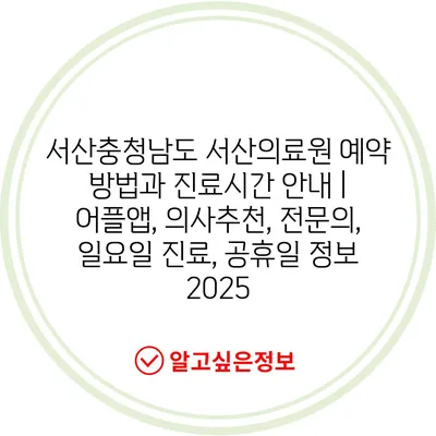 서산충청남도 서산의료원 예약 방법과 진료시간 공지 | 어플앱, 의사추천, 전연락, 일요일 진료, 공휴일 정보 2025