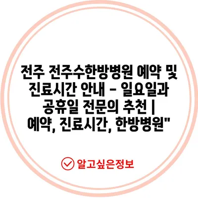 전주수한방병원 예약 방법과 진료시간을 지금 바로 알아보세요!