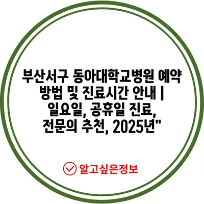 부산서구 동아대학교병원 예약 방법 및 진료시간 공지 | 일요일, 공휴일 진료, 전연락 추천, 2025년