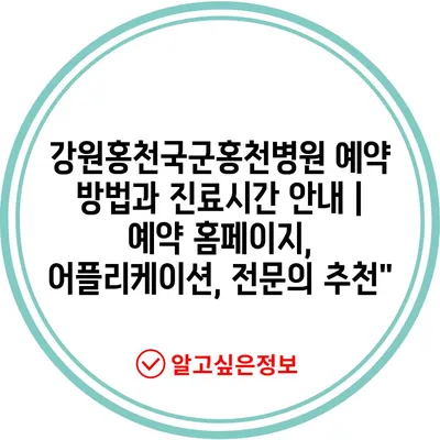 강원홍천국군홍천병원 예약 방법을 자세히 알아보세요.