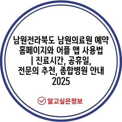 남원전라북도 남원의료원 예약 홈페이지와 어플 앱 사용법 | 진료시간, 공휴일, 전연락 추천, 종합병원 공지 2025에 대해 알아보겠습니다.