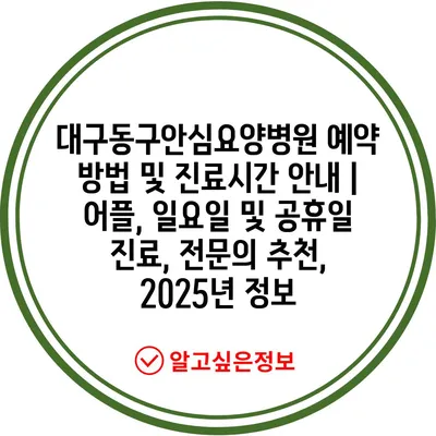 대구동구안심요양병원 예약 방법 및 진료시간 공지 | 어플, 일요일 및 공휴일 진료, 전연락 추천, 2025년 정보 에 대해 자주 묻는 질문 TOP 5