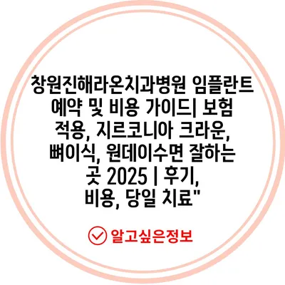 창원진해라온치과병원 임플란트 예약 및 비용 설명서| 보험 적용, 지르코니아 크라운, 뼈이식, 원데이수면 잘하는 곳 2025 | 후기, 비용, 당일 치료