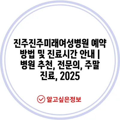 ✅ 진주진주미래여성병원의 예약 방법과 팁을 지금 바로 알아보세요.