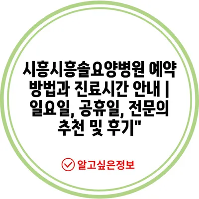 시흥시흥솔요양병원 예약 방법과 진료시간 공지 | 일요일, 공휴일, 전연락 추천 및 후기