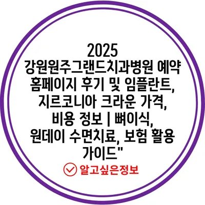 2025 강원원주그랜드치과병원 예약 홈페이지 후기 및 임플란트, 지르코니아 크라운 가격, 비용 정보 | 뼈이식, 원데이 수면치료, 보험 활용 설명서” 에 대해 자주 묻는 질문 TOP 5