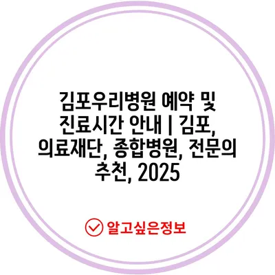 ✅ 김포우리병원의 진료시간과 예약 방법을 자세히 알아보세요.