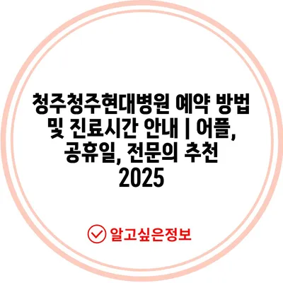 ✅ 청주청주현대병원의 예약 방법을 자세히 알아보세요.