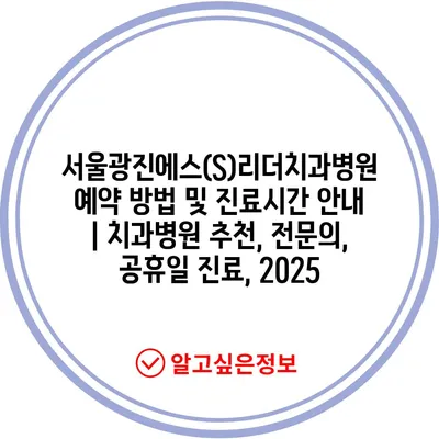 서울광진에스(S)리더치과병원 예약 방법 및 진료시간 공지 | 치과병원 추천, 전연락, 공휴일 진료, 2025 에 대해 자주 묻는 질문 TOP 5