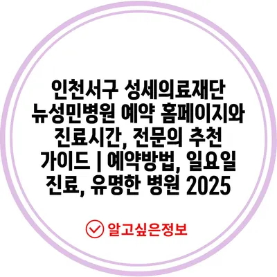 인천서구 성세의료재단 뉴성민병원 예약 홈페이지와 진료시간, 전연락 추천 설명서 | 예약방법, 일요일 진료, 유명한 병원 2025에 대해 자주 묻는 질문 TOP 5