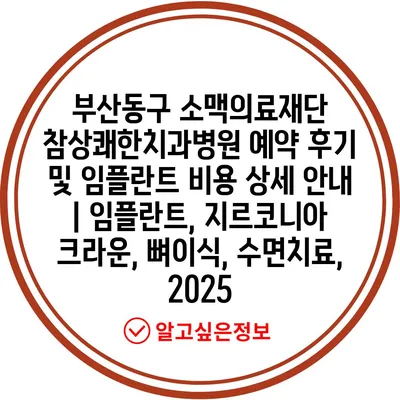 부산동구 소맥의료재단 참상쾌한치과병원 예약 후기 및 임플란트 비용 상세 공지 | 임플란트, 지르코니아 크라운, 뼈이식, 수면치료, 2025에 대해 알아보겠습니다.