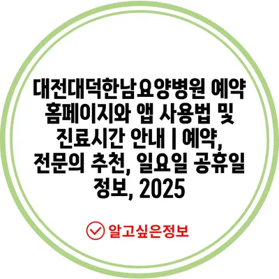대전대덕한남요양병원 예약 홈페이지와 앱 사용법 및 진료시간 공지 | 예약, 전연락 추천, 일요일 공휴일 정보, 2025