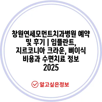 창원연세모먼트치과병원 예약 및 후기 | 임플란트, 지르코니아 크라운, 뼈이식 비용과 수면치료 정보 2025