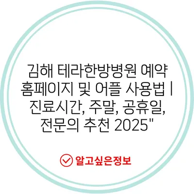 ✅ 김해 테라한방병원의 예약 방법과 진료시간을 자세히 알아보세요.