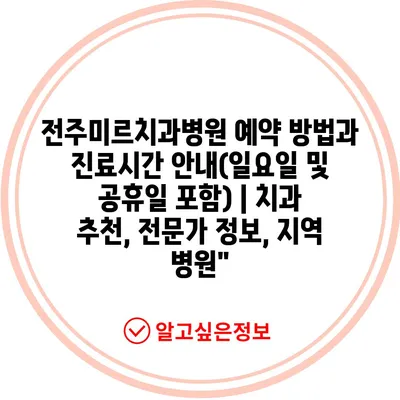 전주미르치과병원 예약 방법과 진료시간 공지(일요일 및 공휴일 포함) | 치과 추천, 전문가 정보, 지역 병원에 대해 자주 묻는 질문 TOP 5