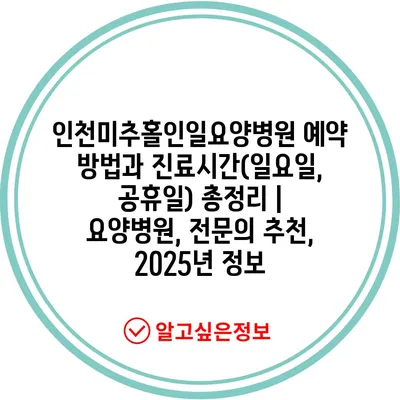 인천미추홀인일요양병원 예약 방법과 진료시간(일요일, 공휴일) 총정리 | 요양병원, 전연락 추천, 2025년 정보 에 대해 자주 묻는 질문 TOP 5