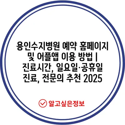 용인수지병원 예약 홈페이지 및 어플앱 이용 방법 | 진료시간, 일요일·공휴일 진료, 전연락 추천 2025 에 대해 자주 묻는 질문 TOP 5