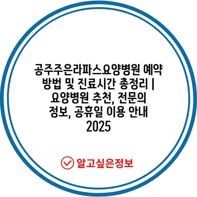 공주주은라파스요양병원 예약 방법 및 진료시간 총정리 | 요양병원 추천, 전연락 정보, 공휴일 이용 공지 2025에 대해 소개합니다.