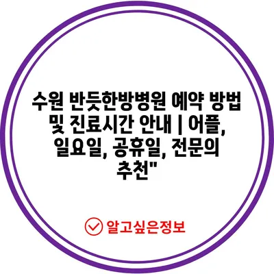 ✅ 수원 반듯한방병원의 예약 팁과 방법을 알아보세요.