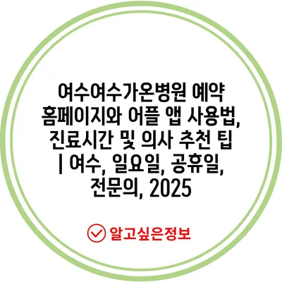 여수여수가온병원 예약 홈페이지와 어플 앱 사용법, 진료시간 및 의사 추천 팁 | 여수, 일요일, 공휴일, 전문의, 2025