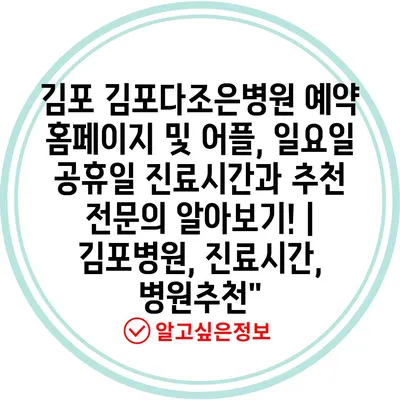 ✅ 김포다조은병원의 예약 방법과 진료시간을 지금 바로 알아보세요!