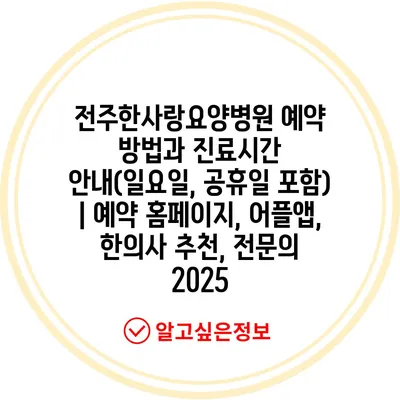 전주한사랑요양병원 예약 방법과 진료시간 공지(일요일, 공휴일 포함) | 예약 홈페이지, 어플앱, 한의사 추천, 전연락 2025에 대해 알아보겠습니다.