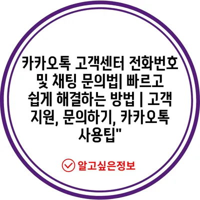 카카오톡 고객센터 전화번호 및 채팅 연락법| 빠르고 쉽게 해결하는 방법 | 고객 지원, 연락하기, 카카오톡 사용팁