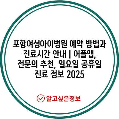 ✅ 포항여성아이병원의 예약 방법과 진료시간을 지금 바로 알아보세요.