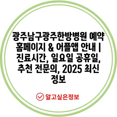 광주남구광주한방병원 예약 홈페이지 & 어플앱 안내 | 진료시간, 일요일 공휴일, 추천 전문의, 2025 최신 정보