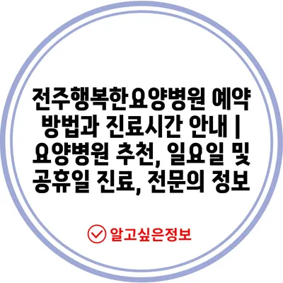 ✅ 전주행복한요양병원 예약과 진료시간에 대한 모든 정보를 알아보세요!