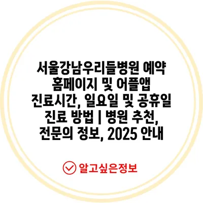 서울강남우리들병원 예약 홈페이지 및 어플앱 진료시간, 일요일 및 공휴일 진료 방법 | 병원 추천, 전연락 정보, 2025 공지 에 대해 자주 묻는 질문 TOP 5