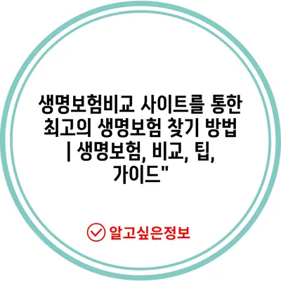 생명보험비교 사이트를 통한 최고의 생명보험 찾기 방법 | 생명보험, 비교, 팁, 설명서