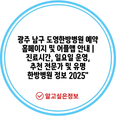 광주 남구 도영한방병원 예약 홈페이지 및 어플앱 공지 | 진료시간, 일요일 운영, 추천 전문가 및 유명 한방병원 정보 2025
