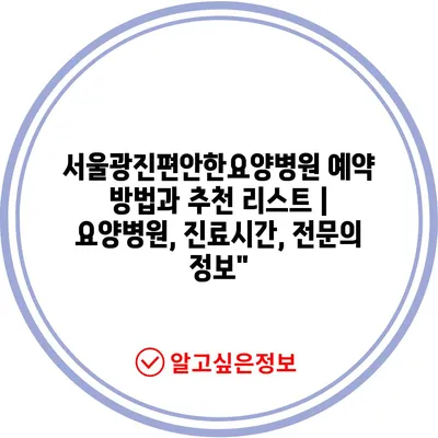 ✅ 서울광진편안한요양병원의 예약 방법을 자세히 알아보세요.