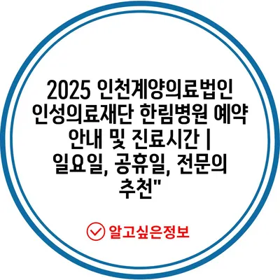 2025 인천계양의료법인 인성의료재단 한림병원 예약 안내 및 진료시간 | 일요일, 공휴일, 전문의 추천”