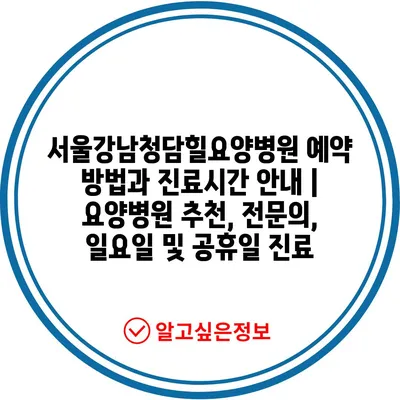 ✅ 서울강남청담힐요양병원의 예약 방법을 자세히 알아보세요.