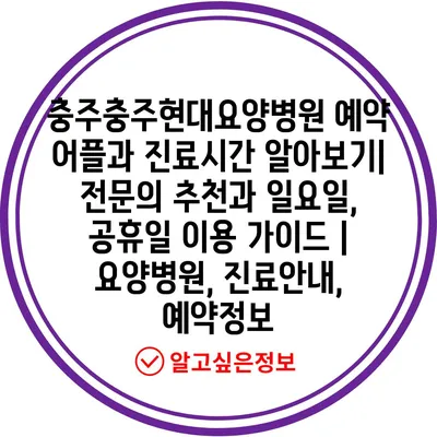 충주충주현대요양병원 예약 어플과 진료시간 알아보기| 전문의 추천과 일요일, 공휴일 이용 가이드 | 요양병원, 진료안내, 예약정보