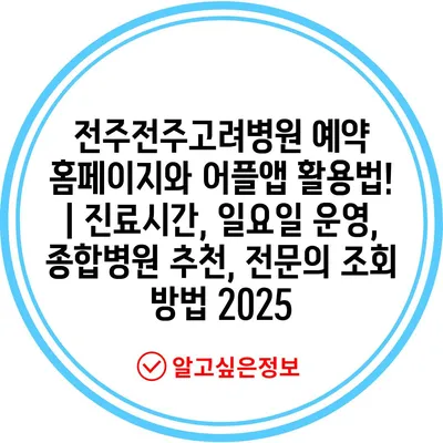 전주전주고려병원 예약 홈페이지와 어플앱 활용법! | 진료시간, 일요일 운영, 종합병원 추천, 전연락 조회 방법 2025 에 대해 자주 묻는 질문 TOP 5