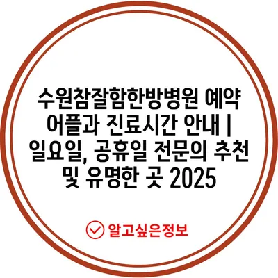 수원참잘함한방병원 예약 어플과 진료시간 공지 | 일요일, 공휴일 전연락 추천 및 유명한 곳 2025에 대해 알아보겠습니다.