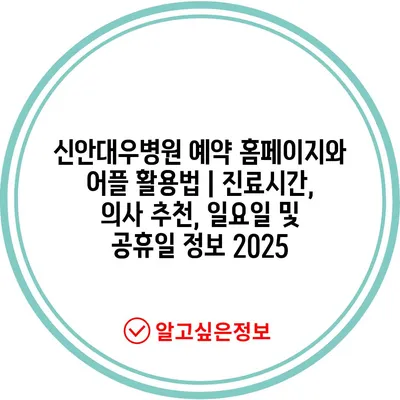 신안대우병원 예약 홈페이지와 어플 활용법 | 진료시간, 의사 추천, 일요일 및 공휴일 정보 2025에 대해 알아보겠습니다.