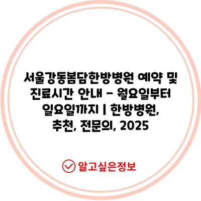 ✅ 서울강동봄담한방병원 예약 방법과 진료시간을 지금 바로 확인하세요!