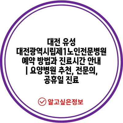 ✅ 대전광역시립제1노인전문병원의 진료시간과 예약 방법을 상세히 알아보세요.