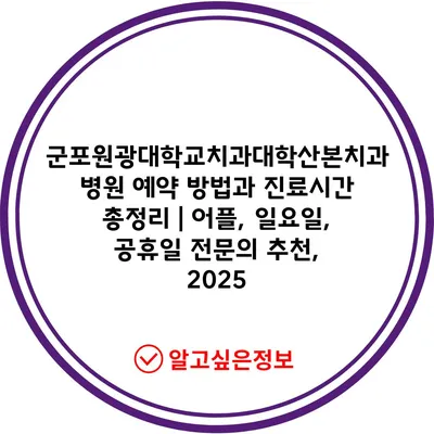 군포원광대학교치과대학산본치과병원 예약 방법과 진료시간 총정리 | 어플, 일요일, 공휴일 전연락 추천, 2025 에 대해 자주 묻는 질문 TOP 5
