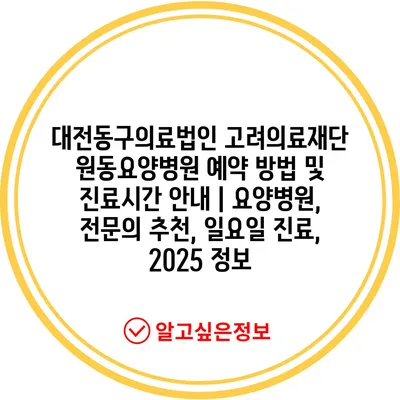 대전동구의료법인 고려의료재단 원동요양병원 예약 방법 및 진료시간 공지 | 요양병원, 전연락 추천, 일요일 진료, 2025 정보 에 대해 자주 묻는 질문 TOP 5