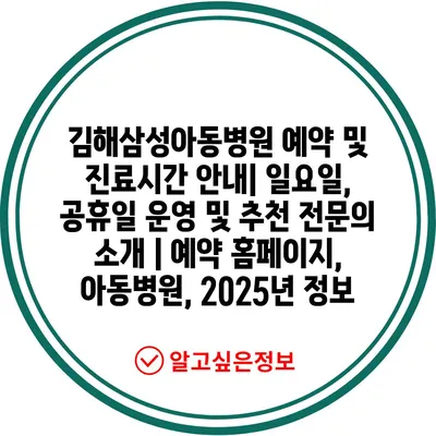 ✅ 2025년 김해삼성아동병원의 진료 시간과 예약 방법을 확인해 보세요.