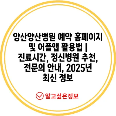 양산양산병원 예약 홈페이지 및 어플앱 활용법 | 진료시간, 정신병원 추천, 전연락 공지, 2025년 최신 정보에 대한 유용한 내용을 공유합니다.
