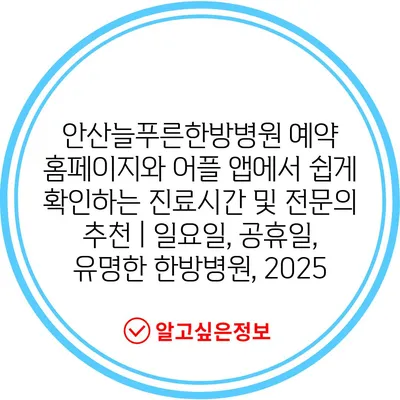 안산늘푸른한방병원 예약 홈페이지와 어플 앱에서 쉽게 확인하는 진료시간 및 전연락 추천 | 일요일, 공휴일, 유명한 한방병원, 2025에 대해 자주 묻는 질문 TOP 5
