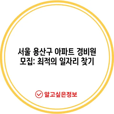 💡 서울 용산구 아파트 경비원 채용 정보를 지금 바로 알아보세요. 💡