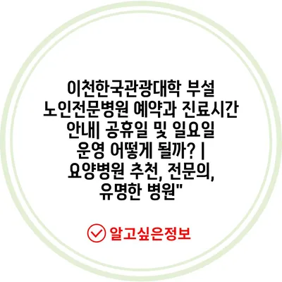 이천한국관광대학 부설 노인전문병원 예약과 진료시간 공지| 공휴일 및 일요일 운영 어떻게 될까?