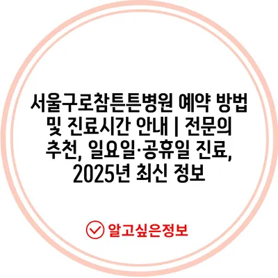 서울구로참튼튼병원 예약 방법 및 진료시간 공지 | 전연락 추천, 일요일·공휴일 진료, 2025년 최신 내용을 소개합니다.